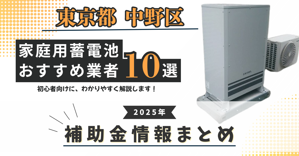 【最新補助金情報】東京都中野区の家庭用蓄電池おすすめ業者10選|相場や選び方を徹底解説(2025年度版)
