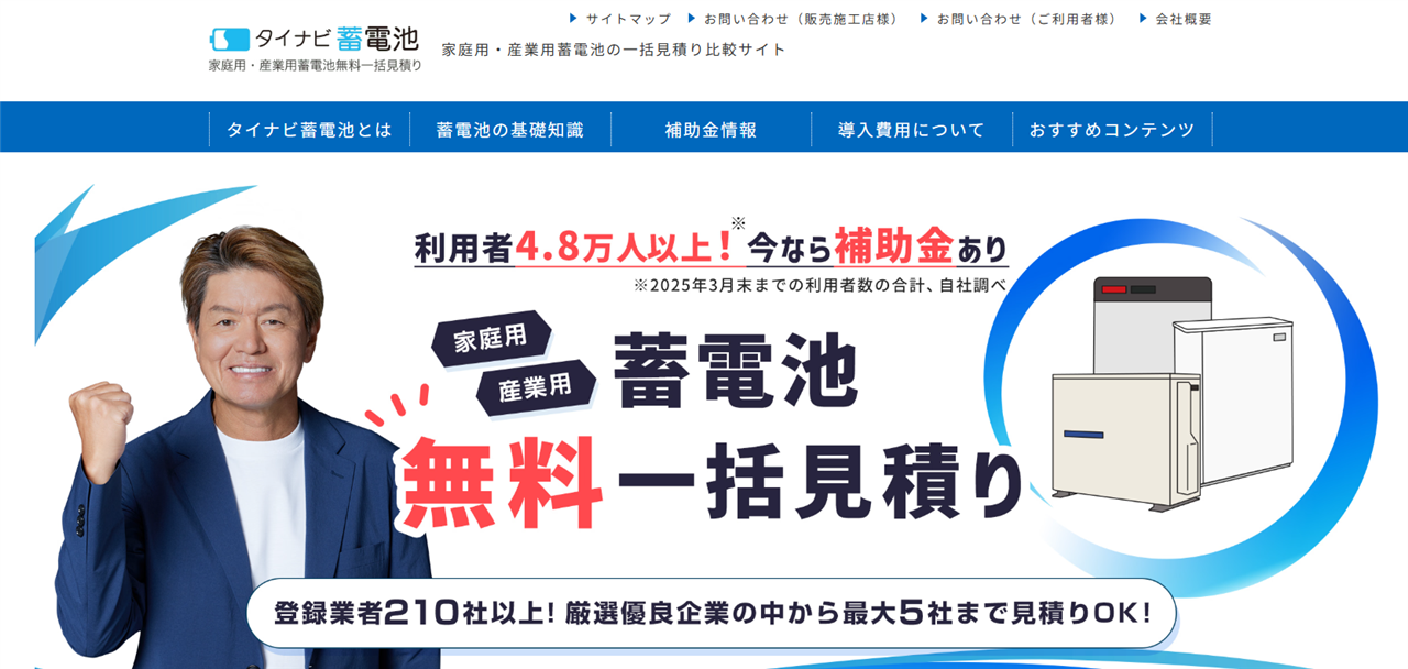 補助金申請に対応可能な業者も紹介しており、複数の業者を比較検討し、お得に安心して蓄電池を導入できます。